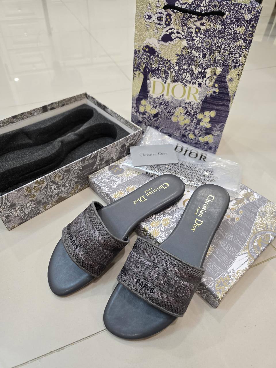 Sandal Dior Dway Printed 🎀 Include BOX + PAPERBAG @305rb Premium Ultimate Sz 37-41 Insole : 37 =23.5 cm 38 =24 cm 39 =24.5 cm 40 =25 cm 41 =25.5 cm