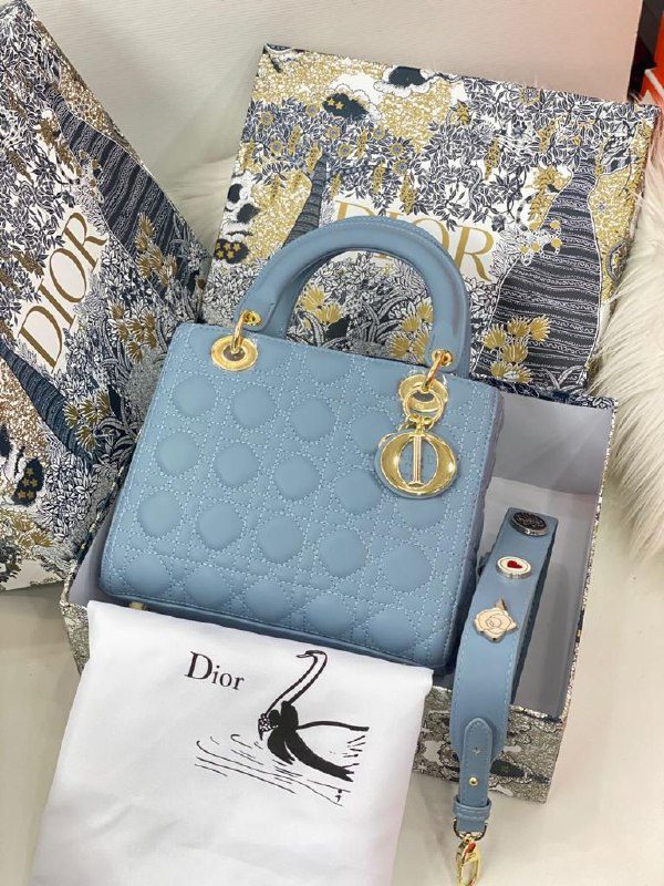 Dior Lady Strap Badges Lambskin Light Blue