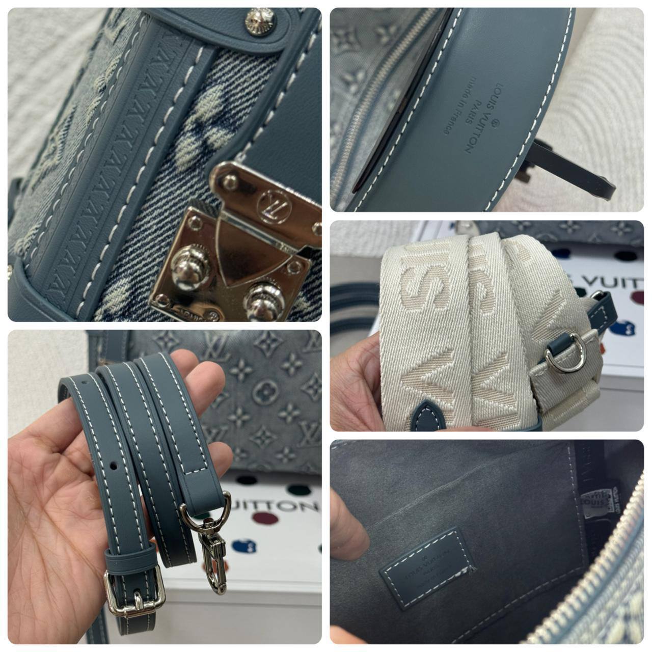 LV Side Trunk Denim Emboss Timbul DOUBLE BOX 🩵 • 23cm • Blue Greyish • Premium Mirror Quality • Double Box, Tali Bahu + Tali Selempang Kanvas dan Kulit, Syal, Fake Bill, Dustbag • @780rb